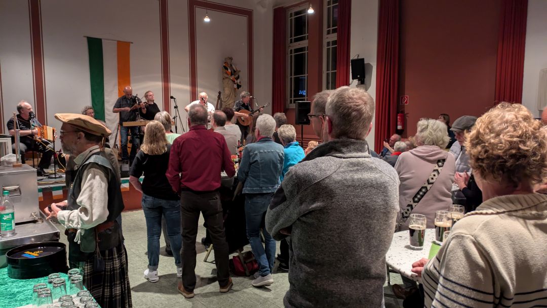 Im gut gefüllten Sophiensaal in Warendorf gab es wie immer gute Musik, diesmal von "AnRinn" aus Bramsche, die nach 10 Jahren mal wieder in Warendorf zu hören waren. Natürlich sorgten süffige Getränke und leckere Crisps für Verpflegung. Es gab Neuigkeiten rund um den DIF, Zeit zum Plaudern und Platz zum Tanzen.